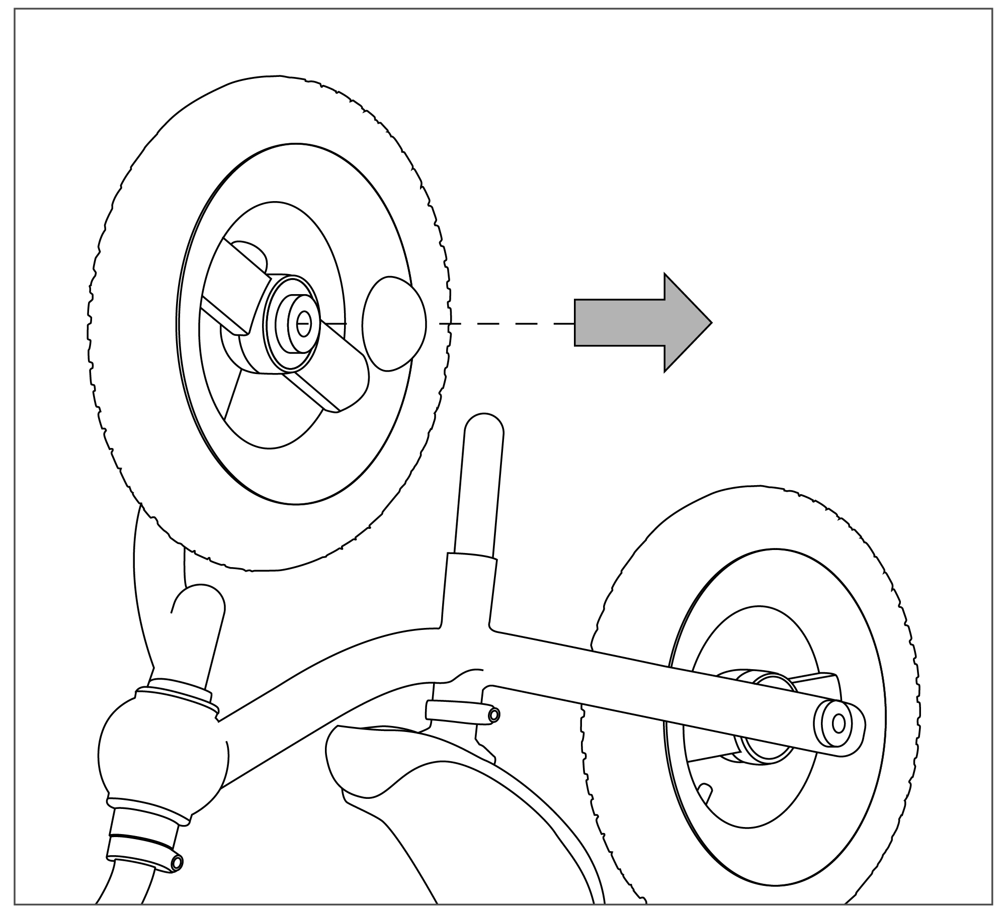 ⑥ 右手握緊右側踏板柄,同時把前輪往後轉鬆開。