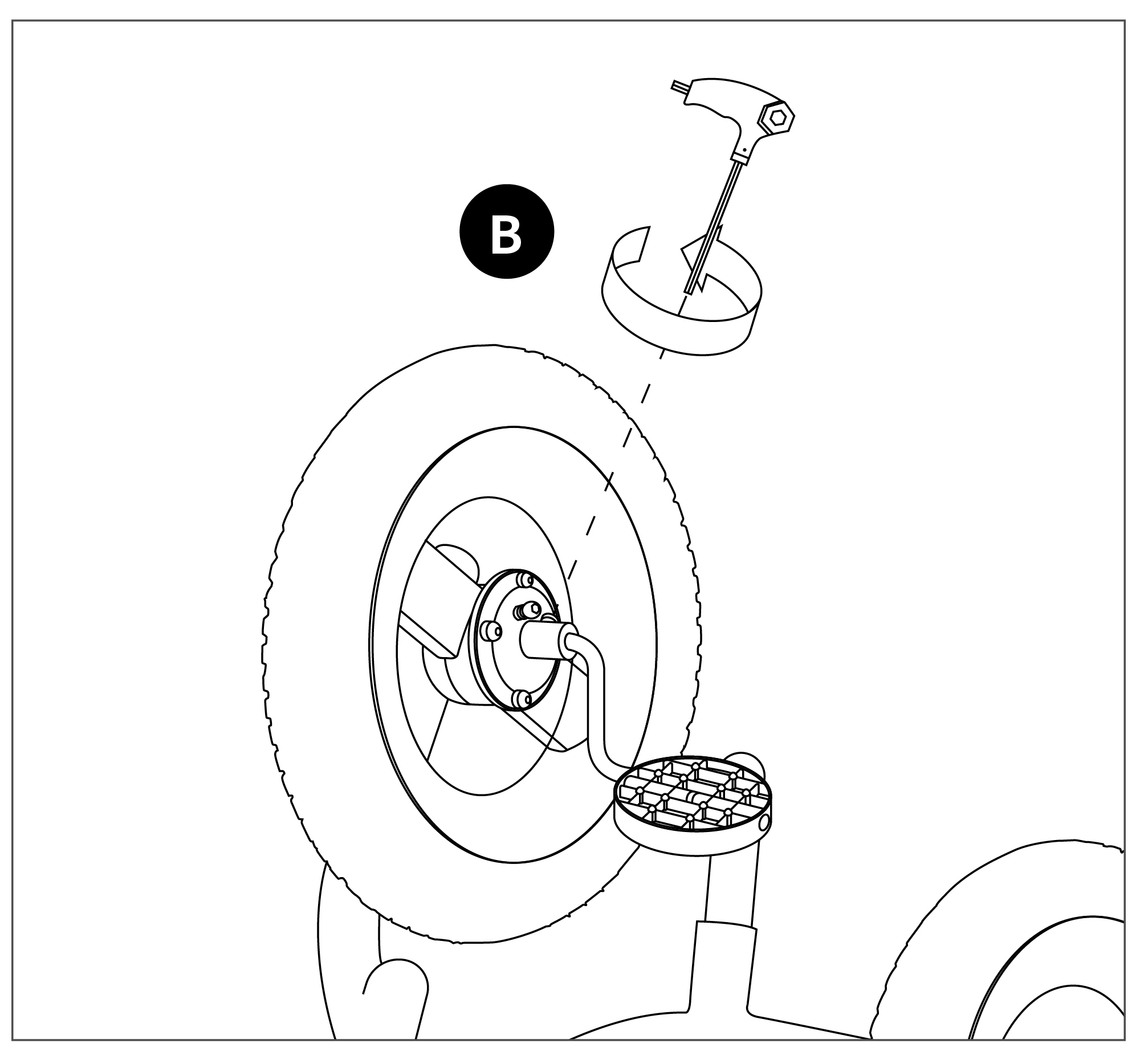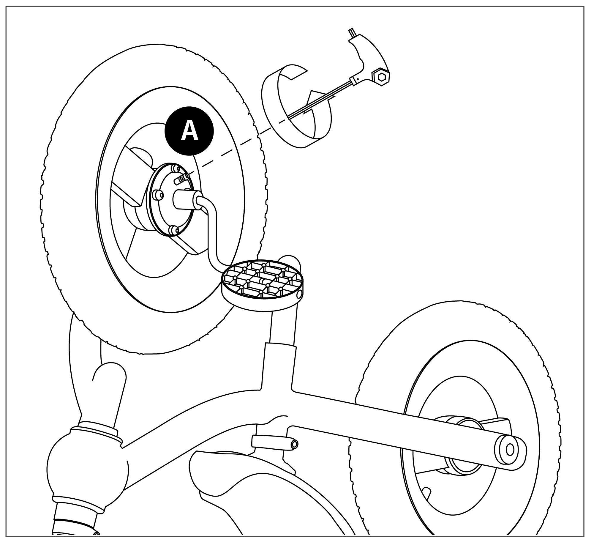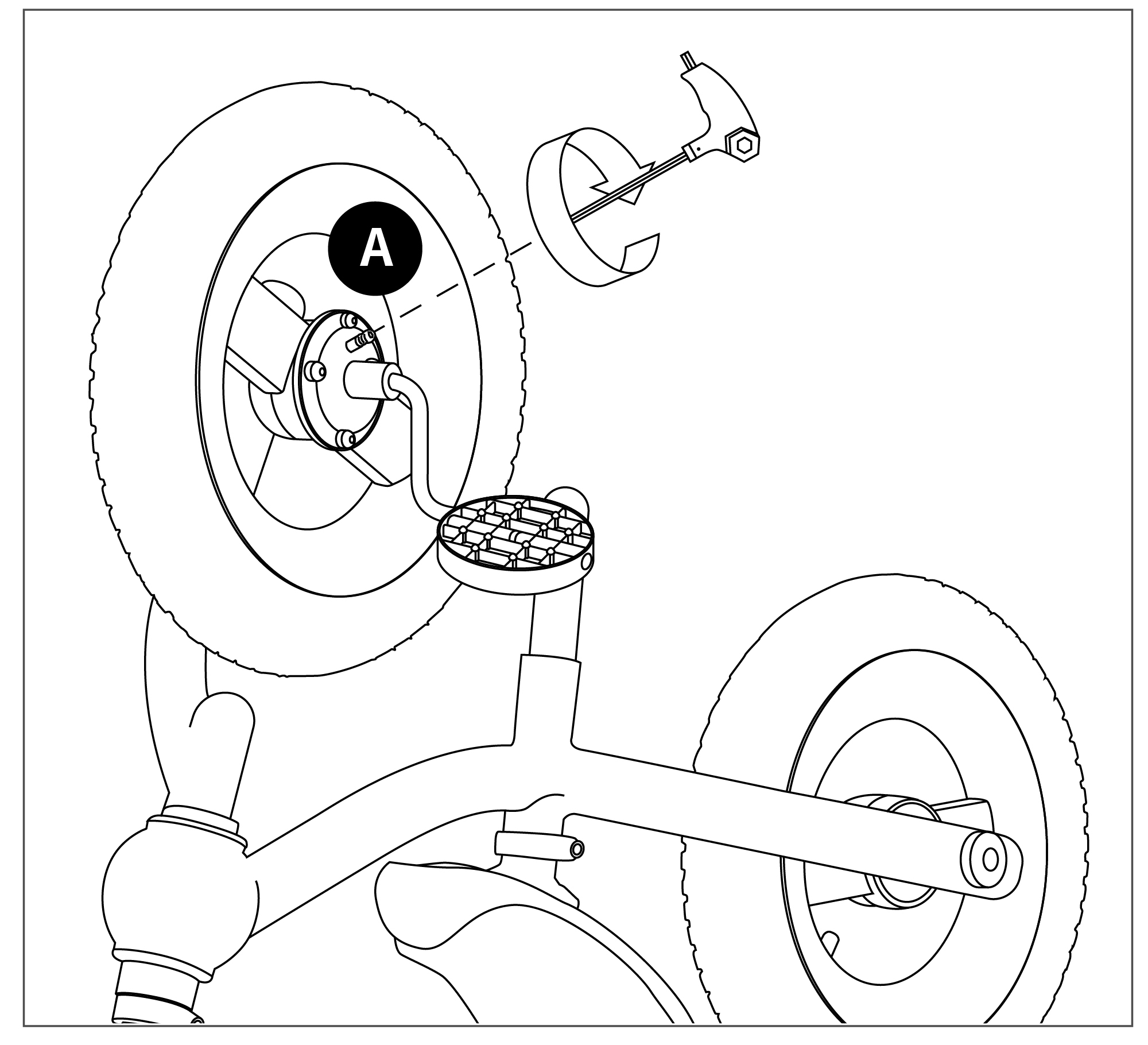 ⑤ 使用六角工具,順時針轉緊右側踏板的A螺絲。