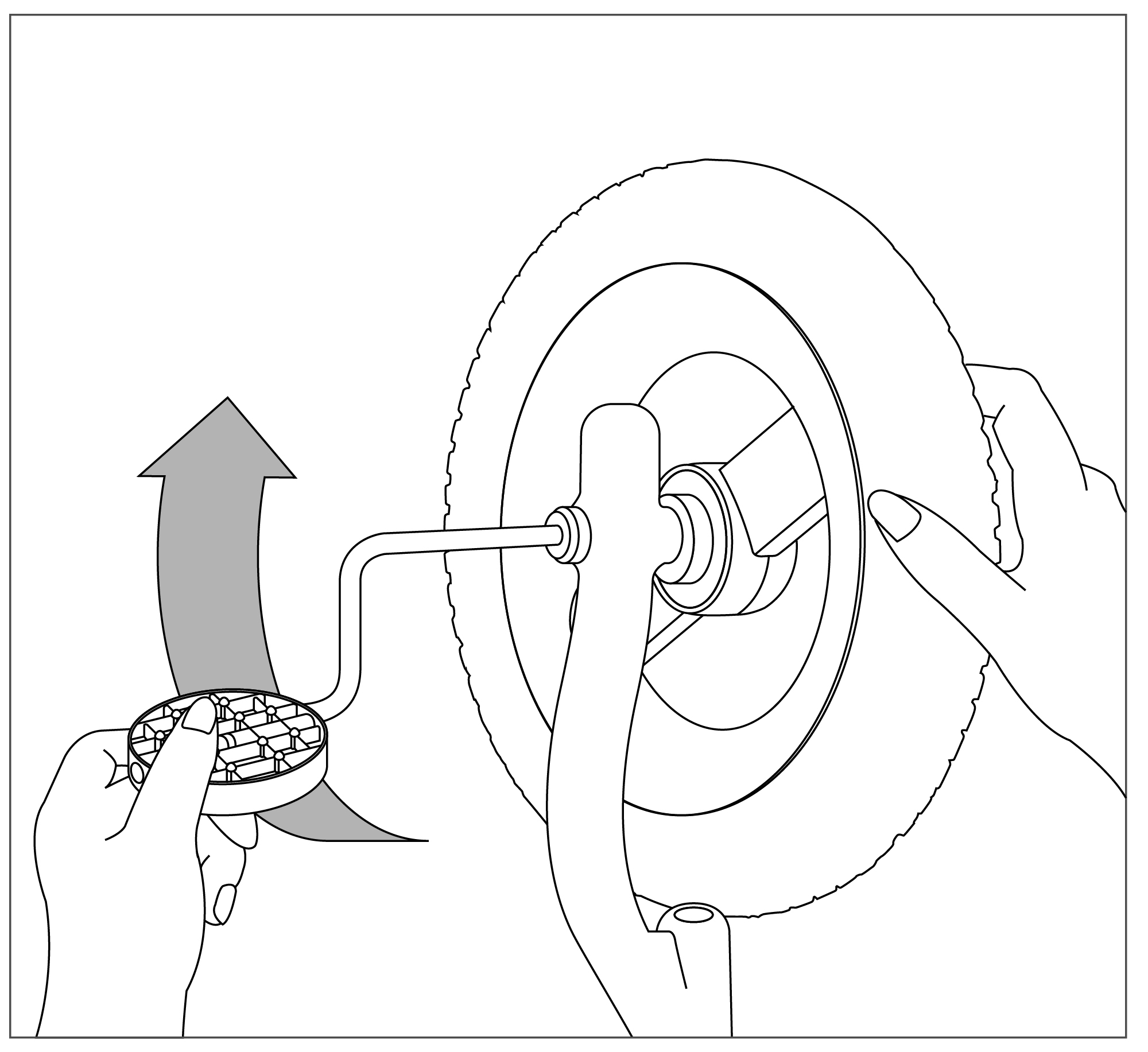 ⑧ 用手固定車輪,確認踏板可否單獨轉動而不會卡死。若確認無誤即完成踏板安裝。