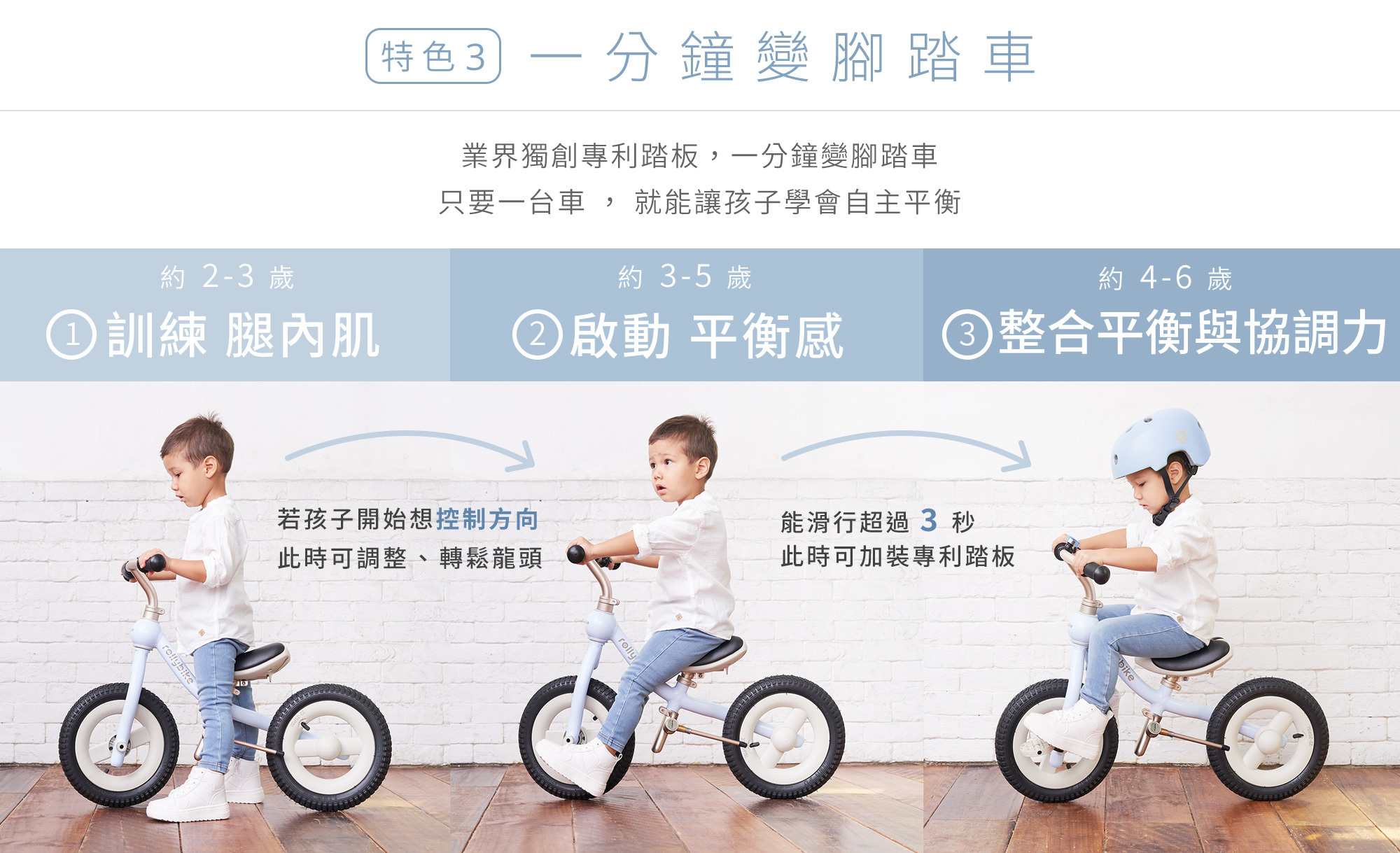 3. 本產品必須在成人照顧下使用,請勿讓孩童任意於危險街道騎乘。